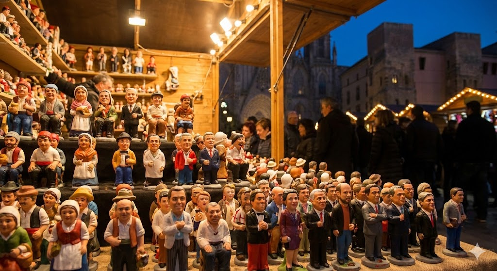 Verás en todos los belenes la figura de un campesino con barretina (gorro rojo) agachado y haciendo sus necesidades. No es una falta de respeto; al contrario. El Caganer es un símbolo de fertilidad (abona la tierra) y de buena suerte para el año entrante. Hoy en día, se hacen versiones con caras de políticos, futbolistas y famosos. ¡Es el souvenir más buscado!